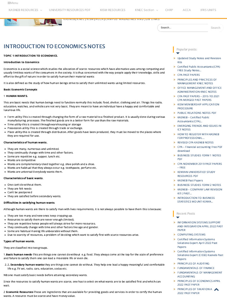 Introduction To Economics Notes Masomo Msingi Publishers PDF