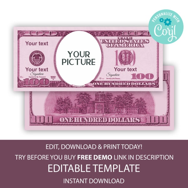 Printable 100 Dollar Bill Etsy