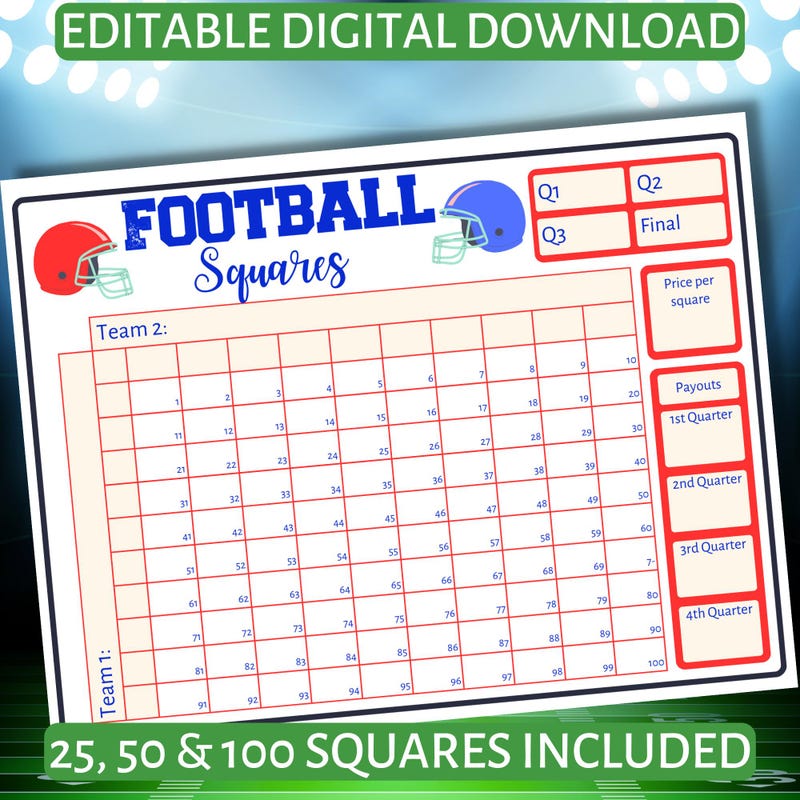 Printable 100 Squares Football Grid Numbers Instant Download Etsy
