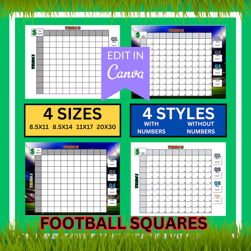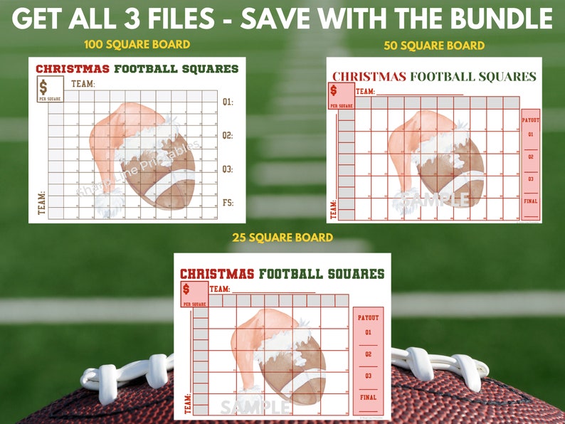 Christmas Football Squares Template Bundle Fillable PDF (100 50 25