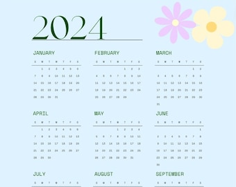 2024 Yearly Printable Calendar (PDF Files Included) Etsy