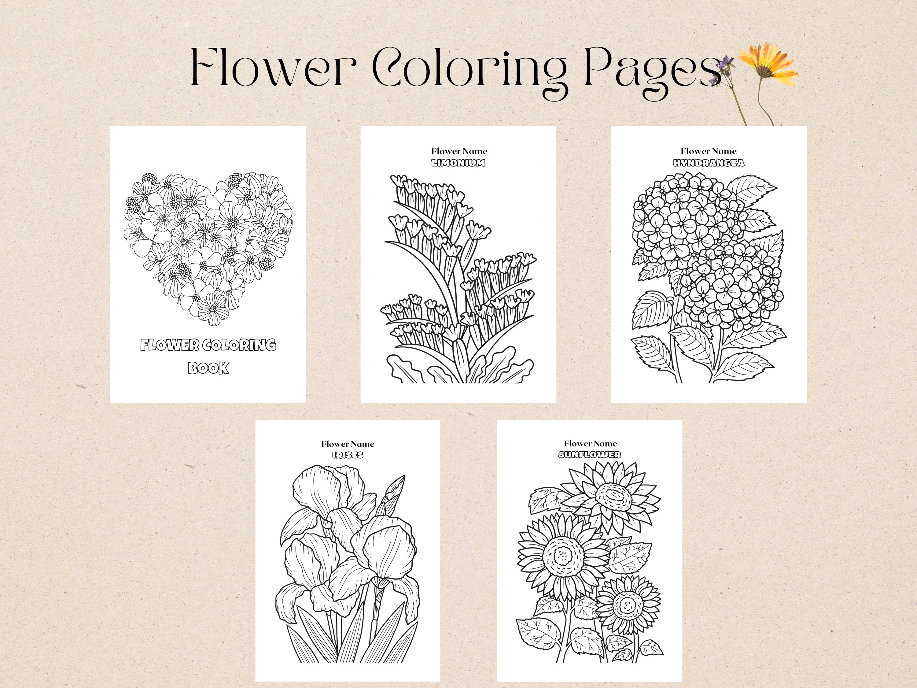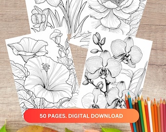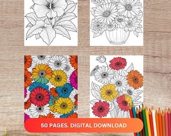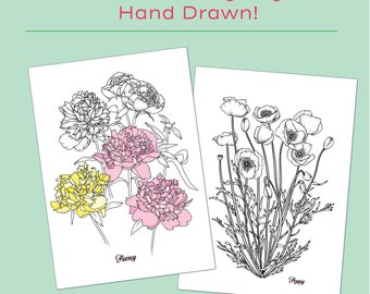 PrintableFlower Coloring Pages Flower Coloring Pages Etsy