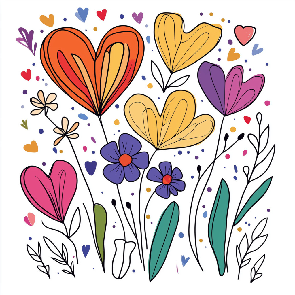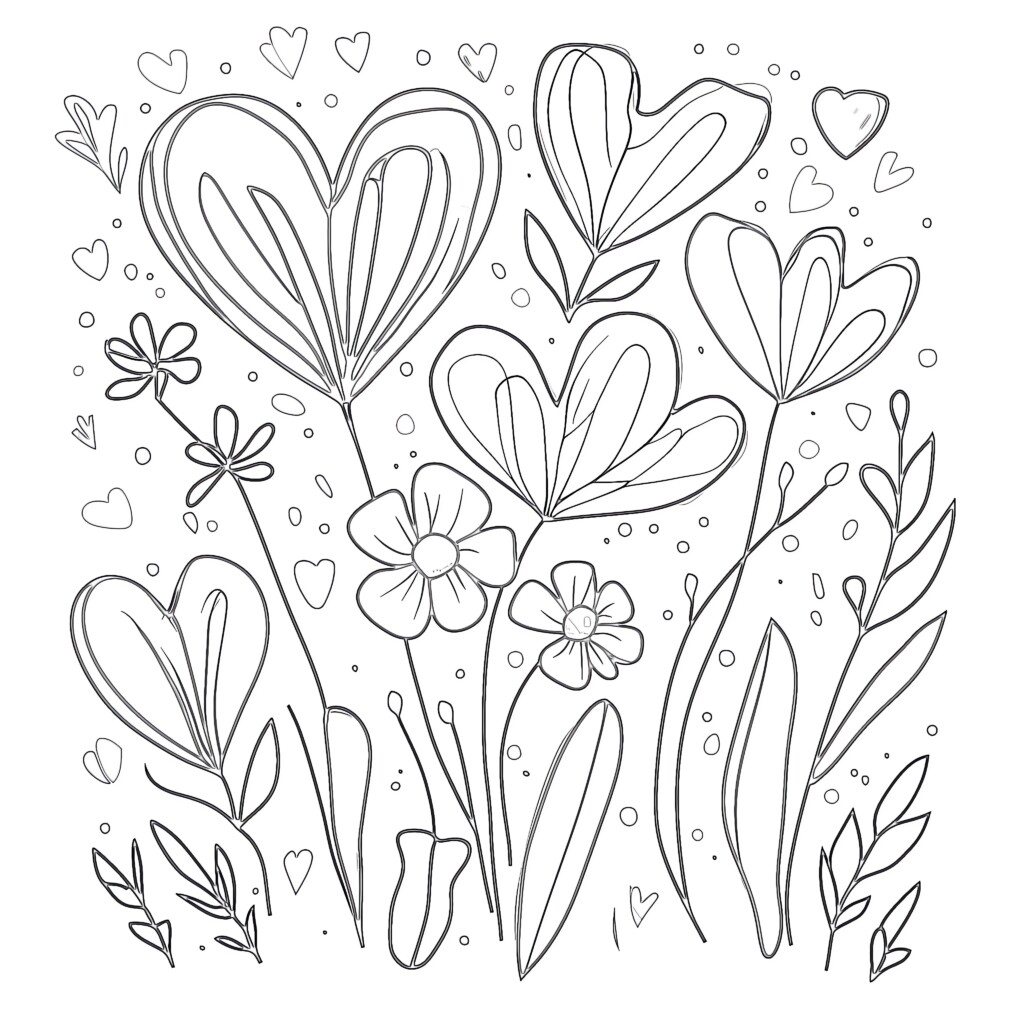 Pretty heart of flowers and leaves Flowers vegetation Coloring