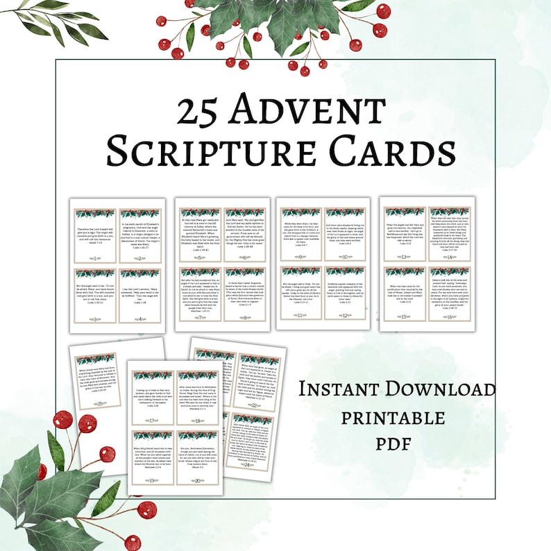 25 Christmas Printable Advent Calendar Bible Verses with Advent Cards