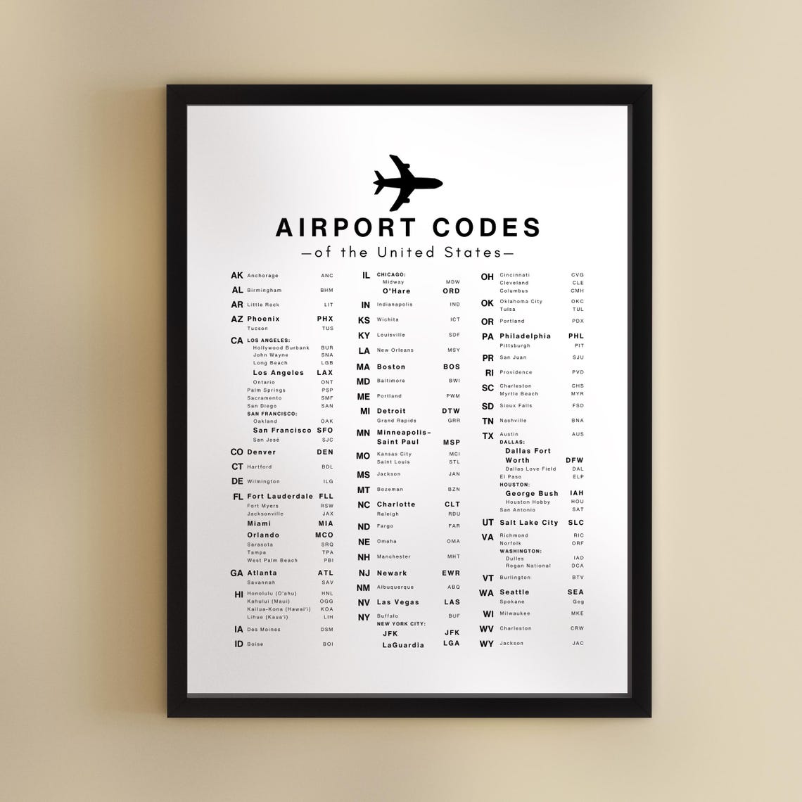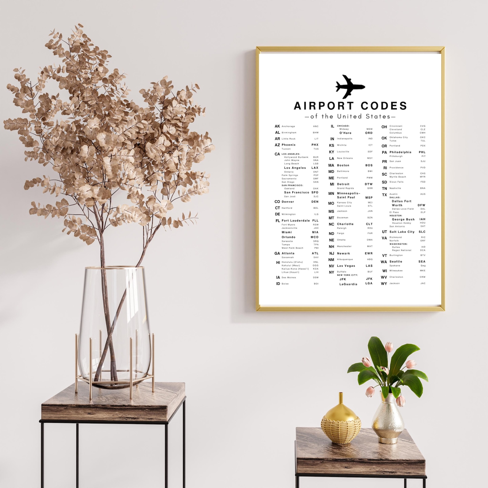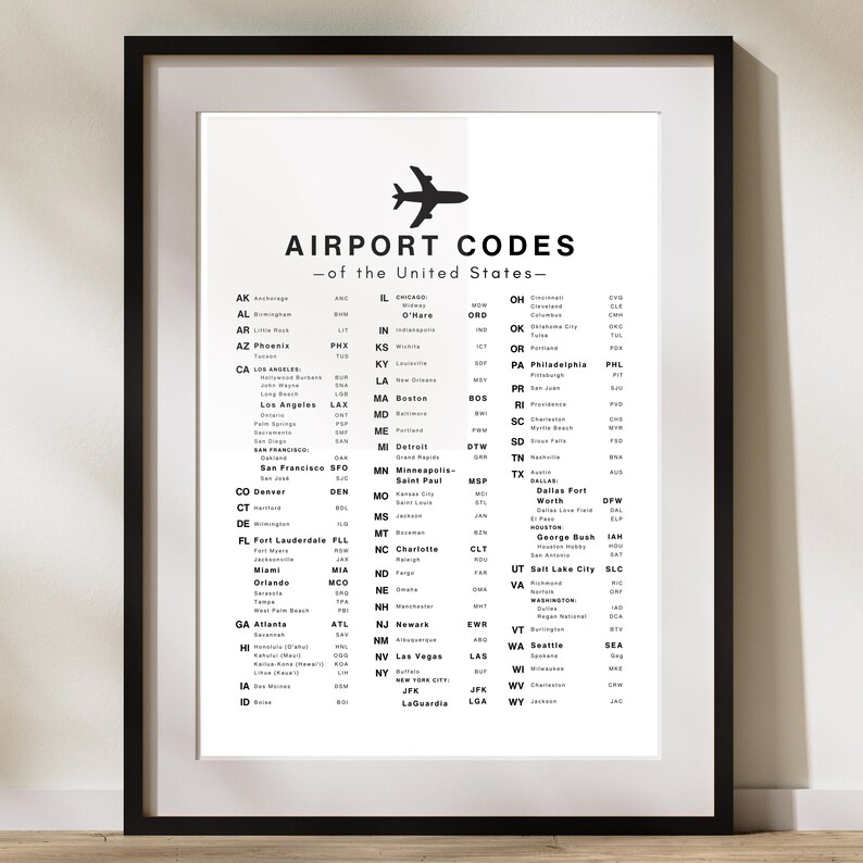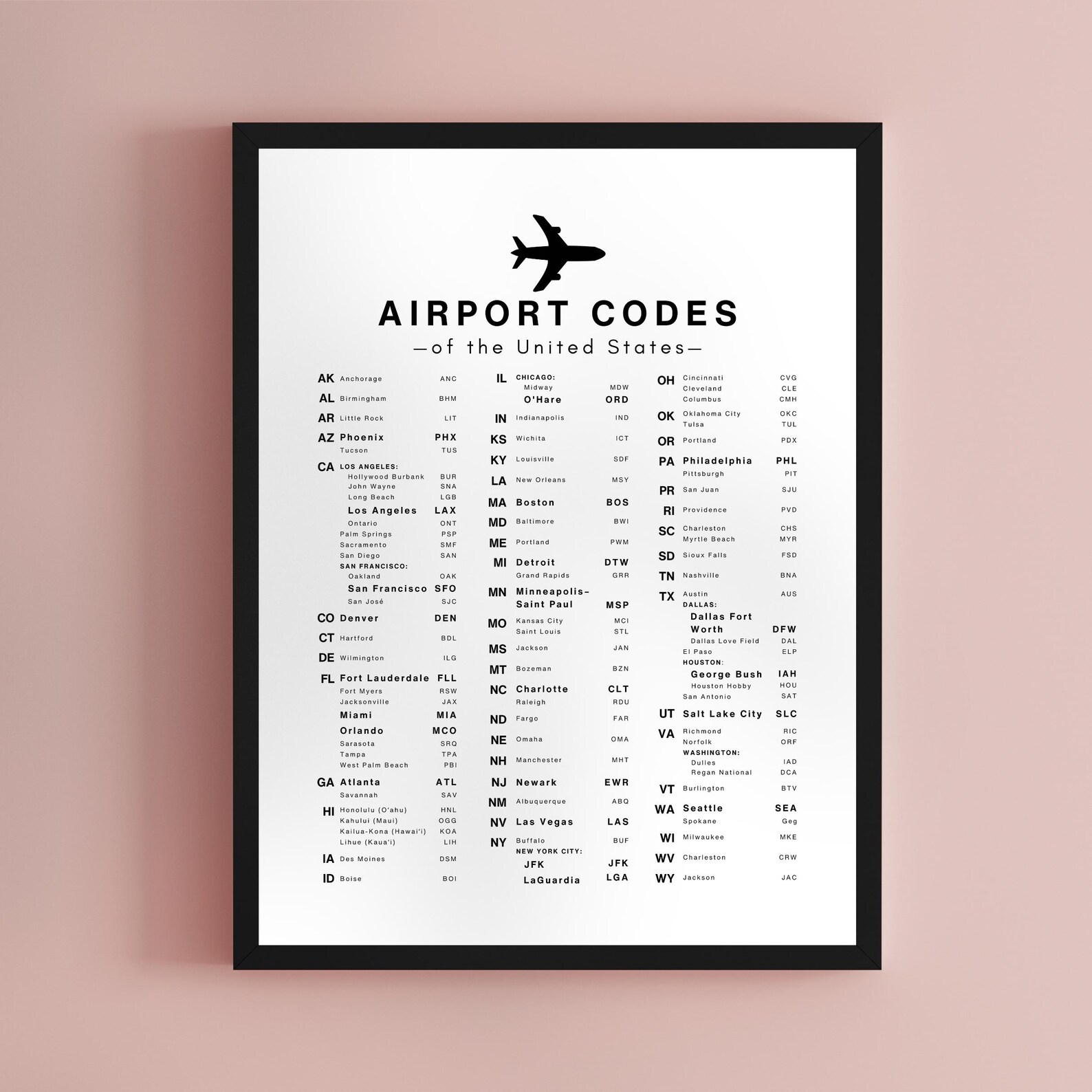 Airport Codes USA Travel Poster / Modern Travel Wall Art / Minimalist