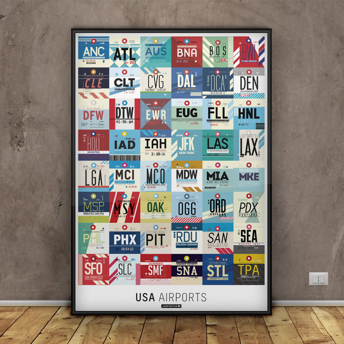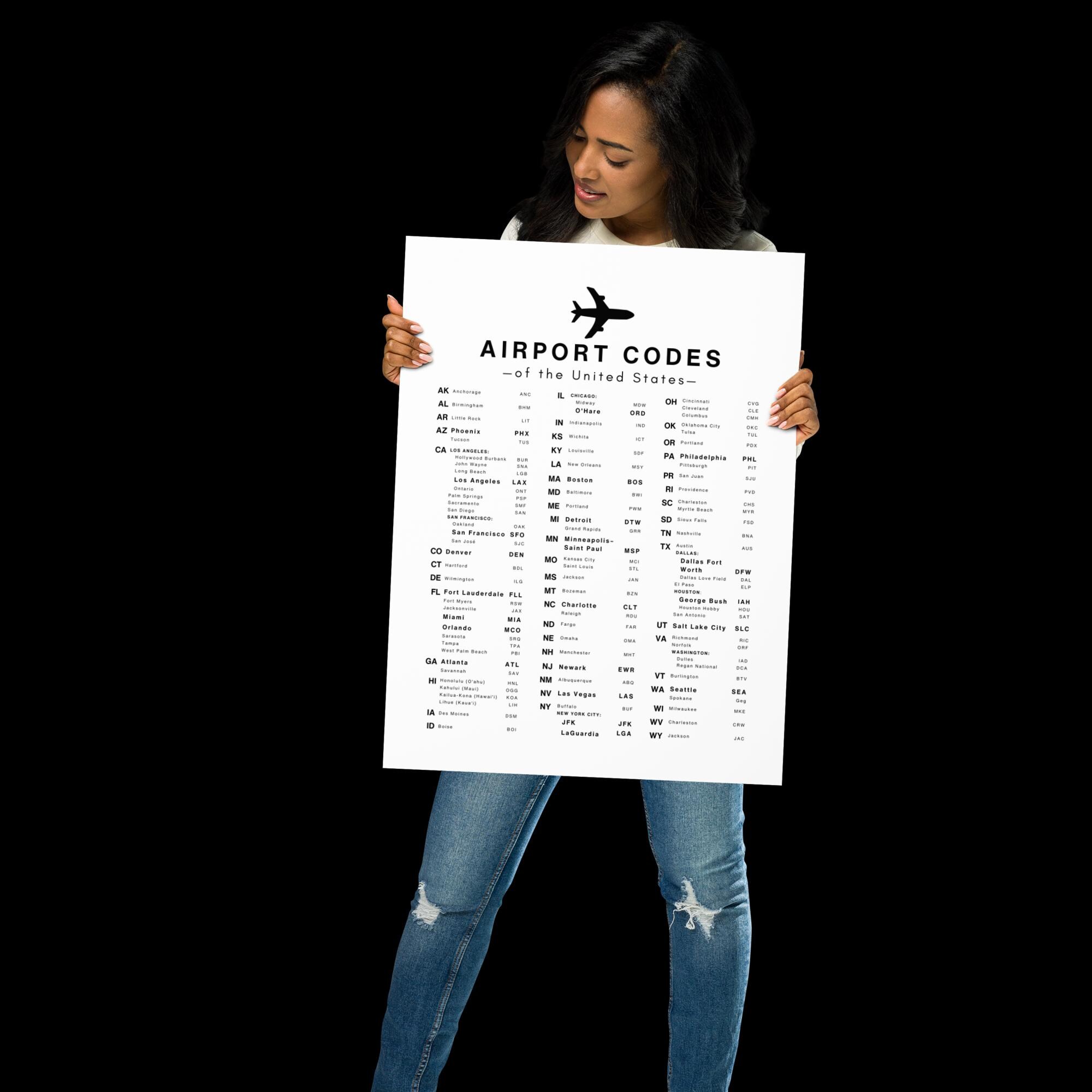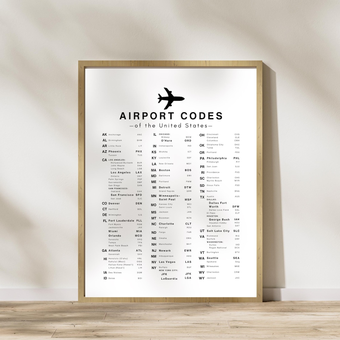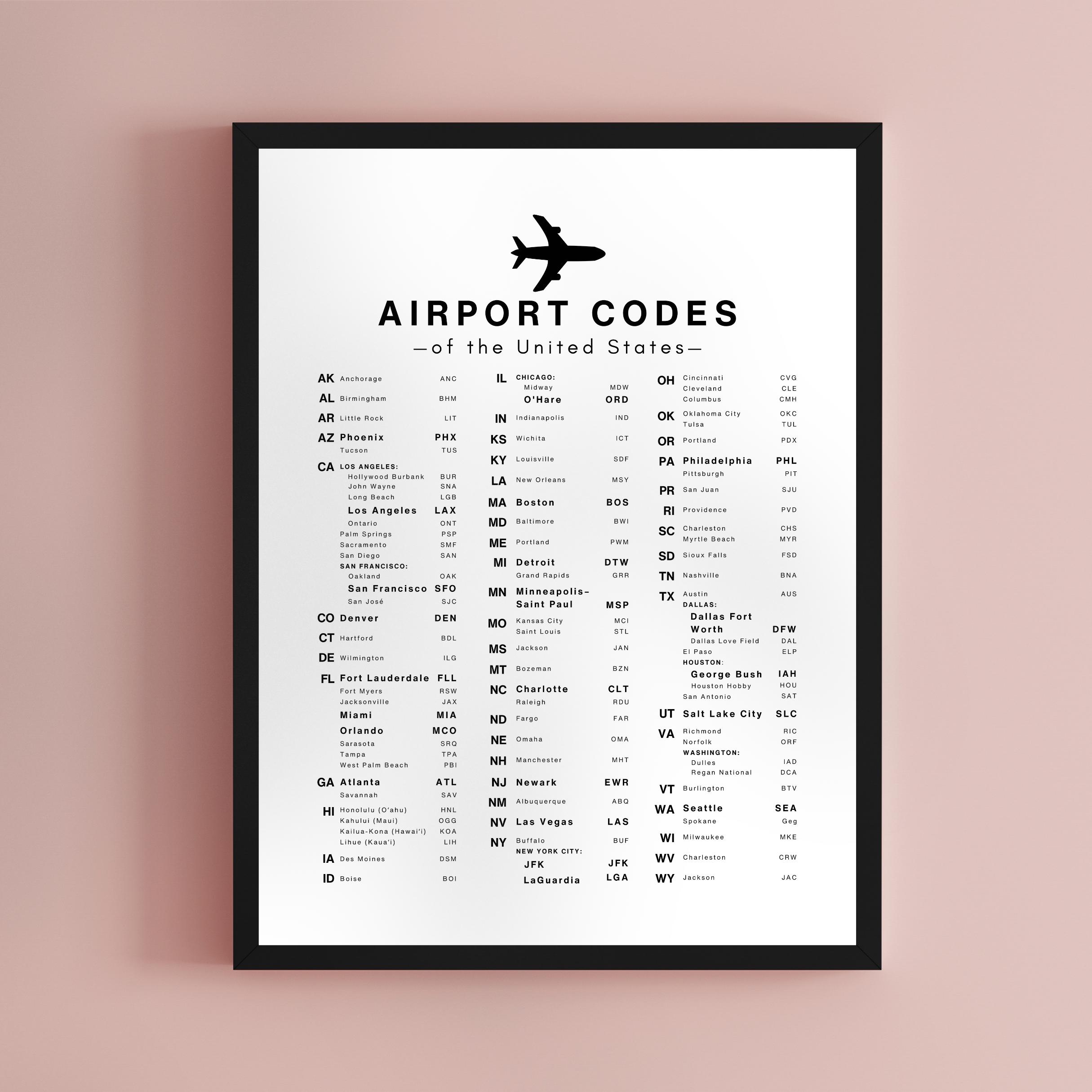 Airport Codes USA Travel Poster / Modern Travel Wall Art / Minimalist