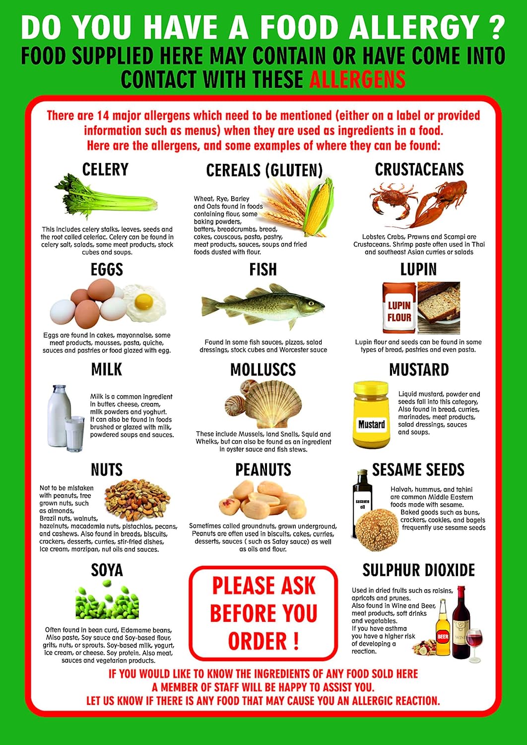 FOOD ALLERGY AWARENESS SIGN A4 297mm x 210mm India Ubuy