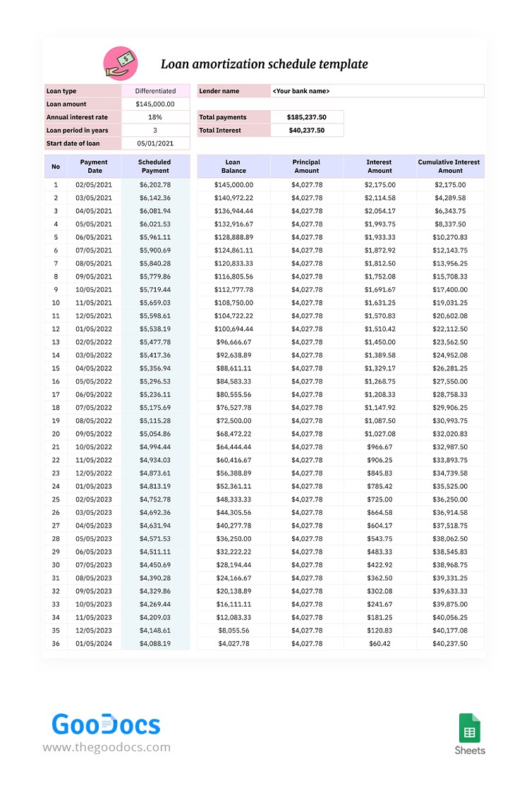 Personal Loan Amortization Schedule Template in Excel Google Sheets