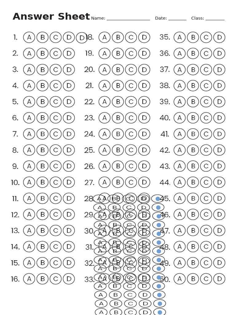 Free Printable Bubble Answer Sheet 1 50 Printable JD