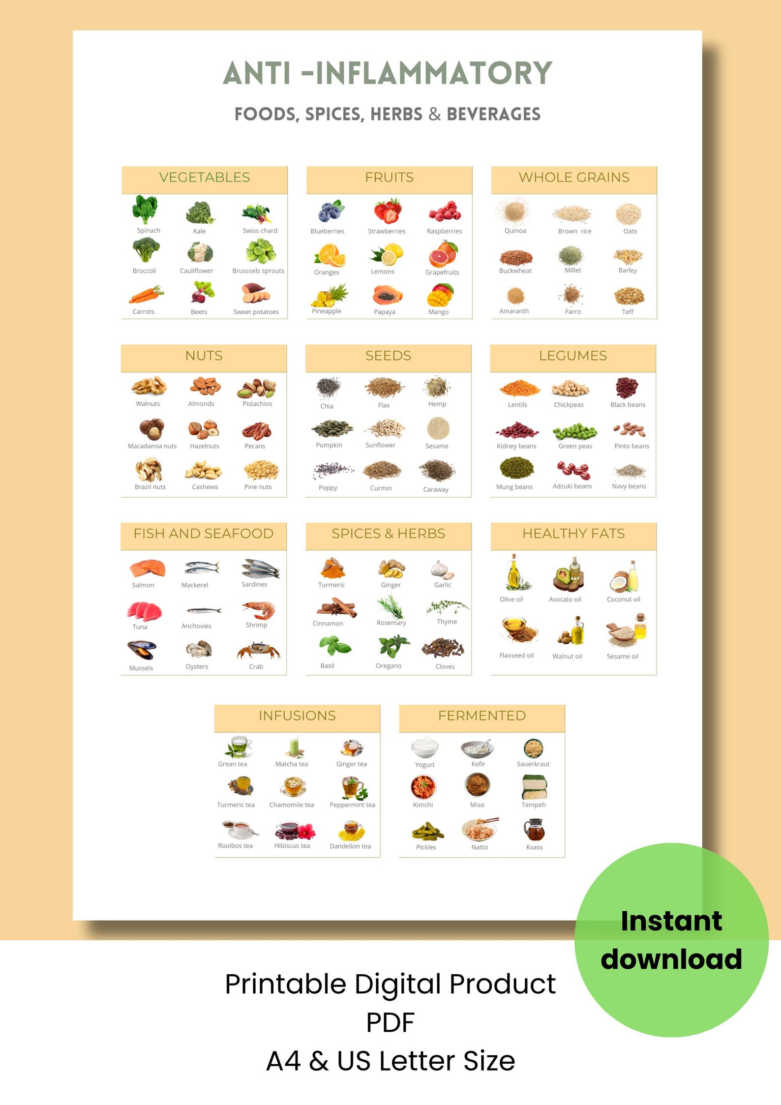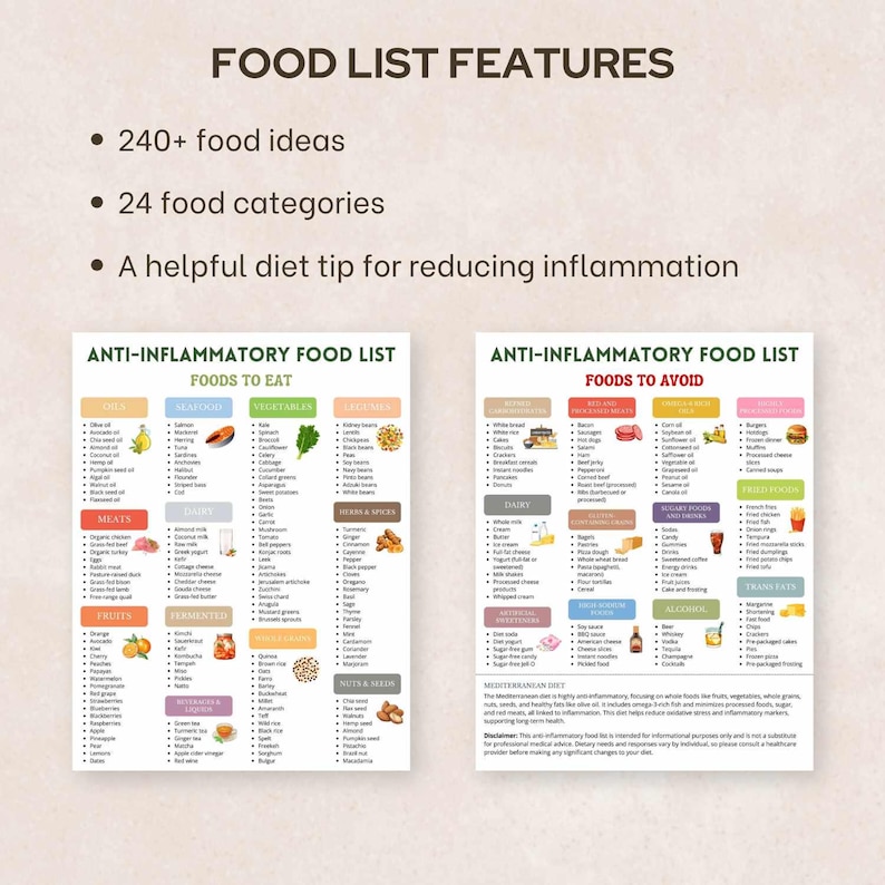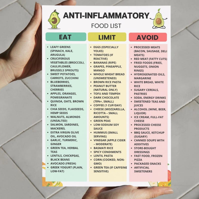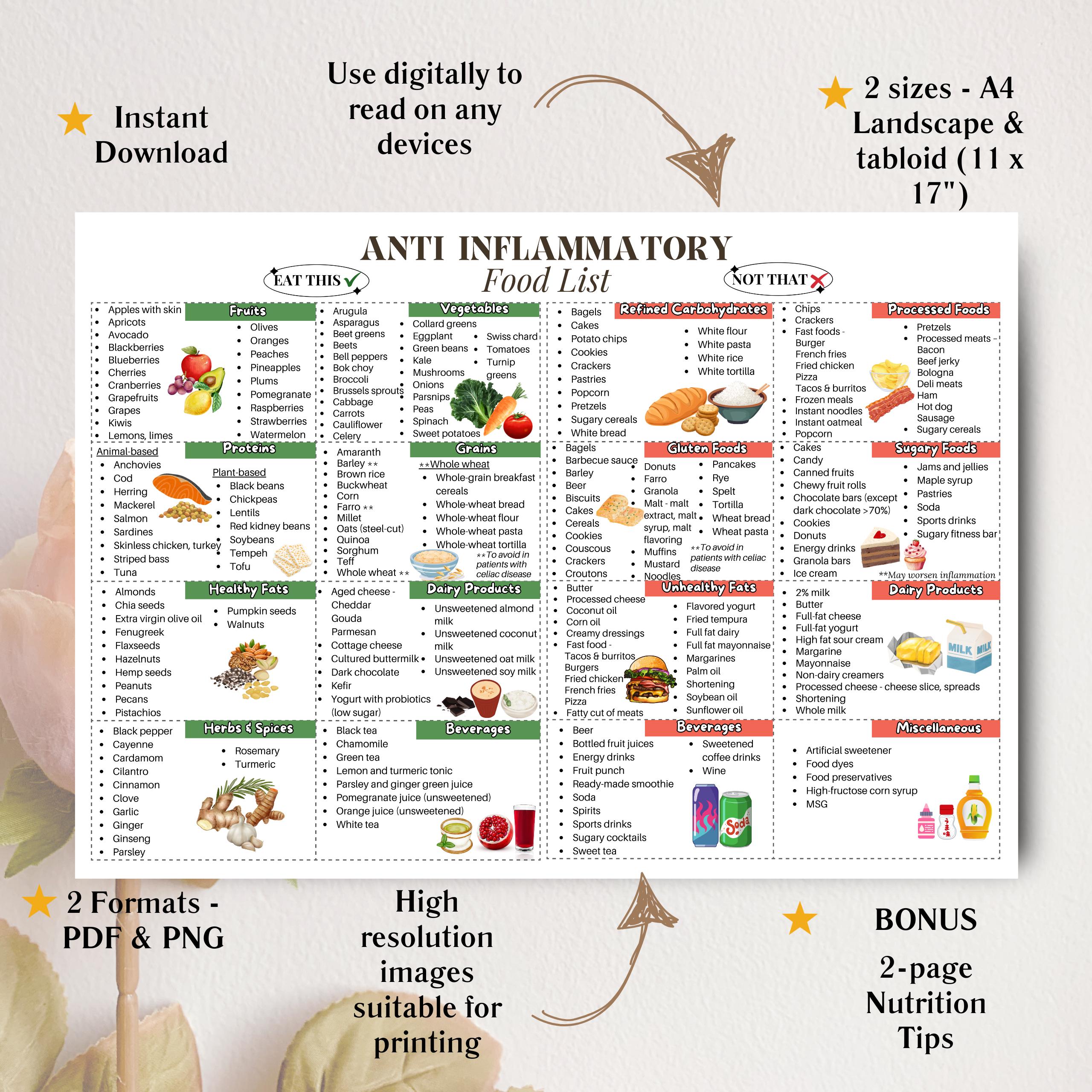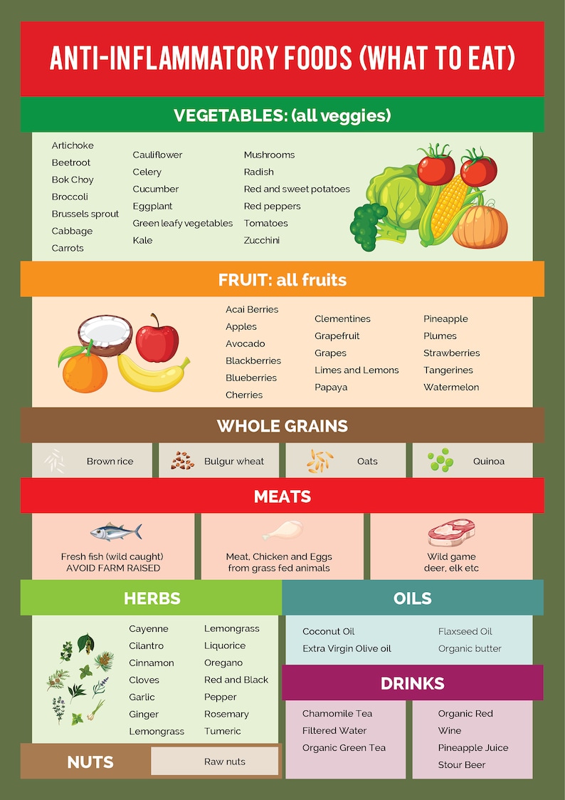Anti inflammatory Foods List PDF Printable Guide for a Healthier You Etsy