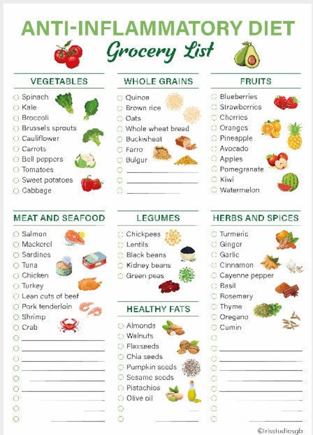 Anti Inflammatory Foods Chart Food Shopping List Printable Digital