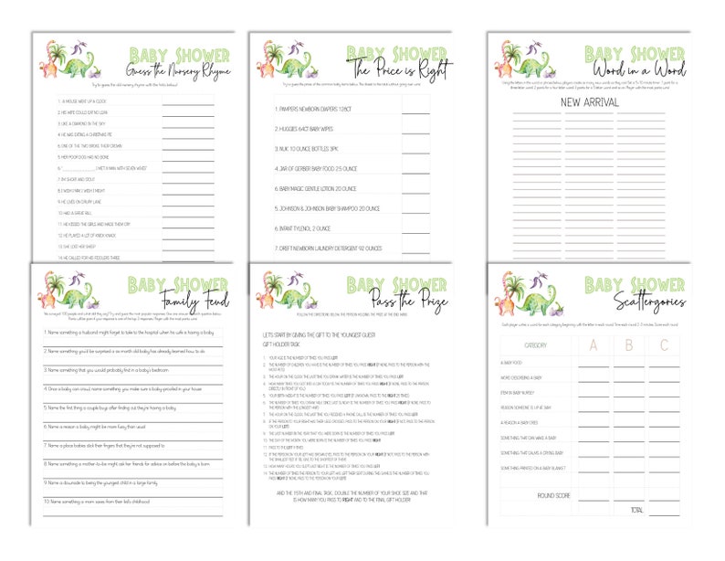 Dinosaur Baby Shower Games Printable Babyshower Games Bundle