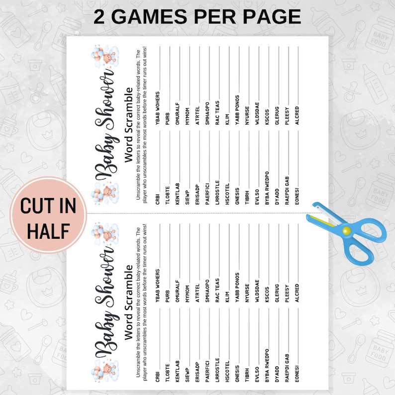Baby Shower Word Scramble Game Printable Baby Shower Games Word