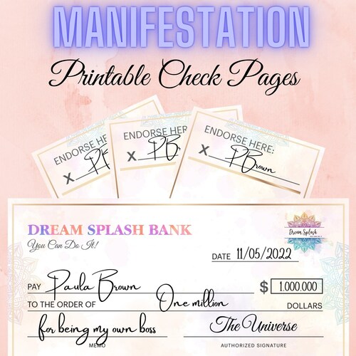 Printable Manifestation Cheques Vision Board Check Law of Etsy