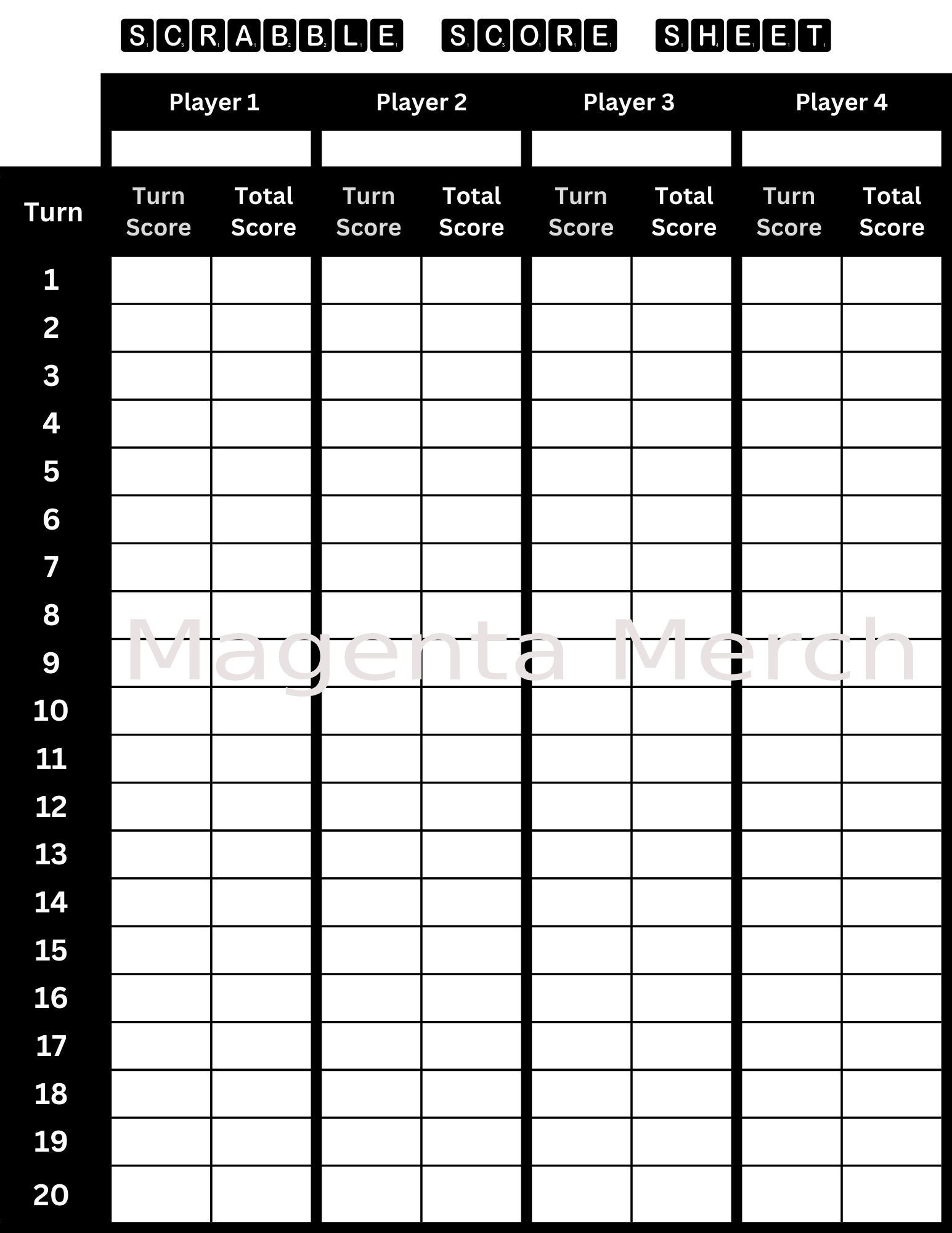 Printable Replacement Score Card for Scrabble A4 US Letter PDF Sizes