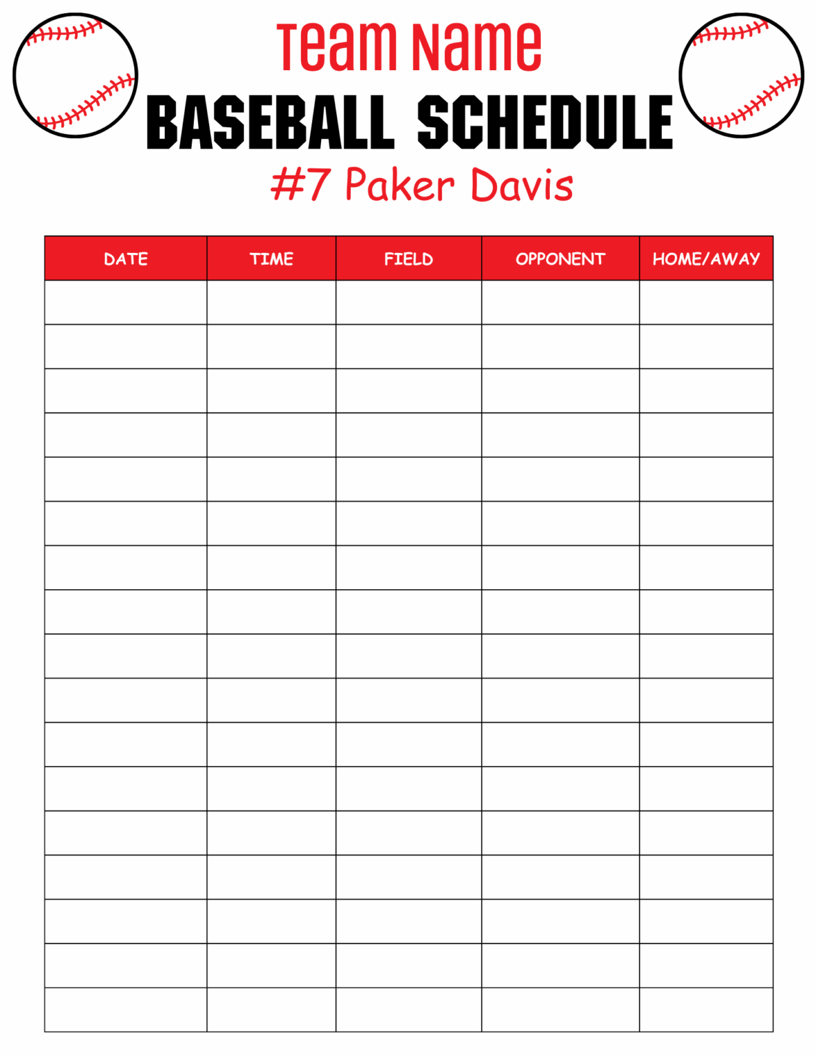 Baseball Schedule Template Printable Baseball Schedule Editable