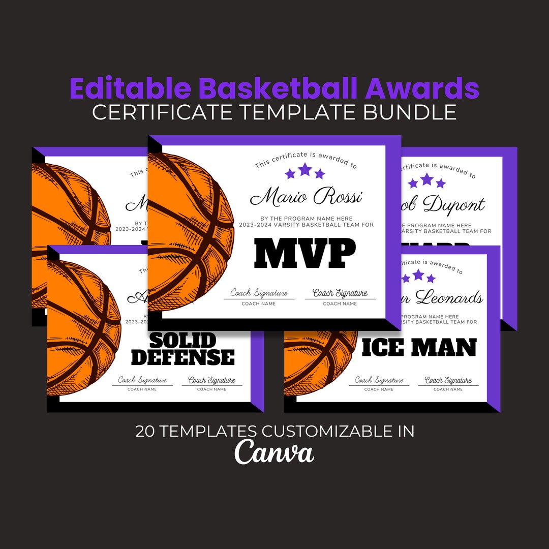 Basketball Awards Printable Basketball Team Certificate Bundle Canva