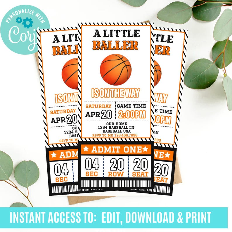 Basketball Baby Shower Invitation Ticket Little Baller Game Day Invite