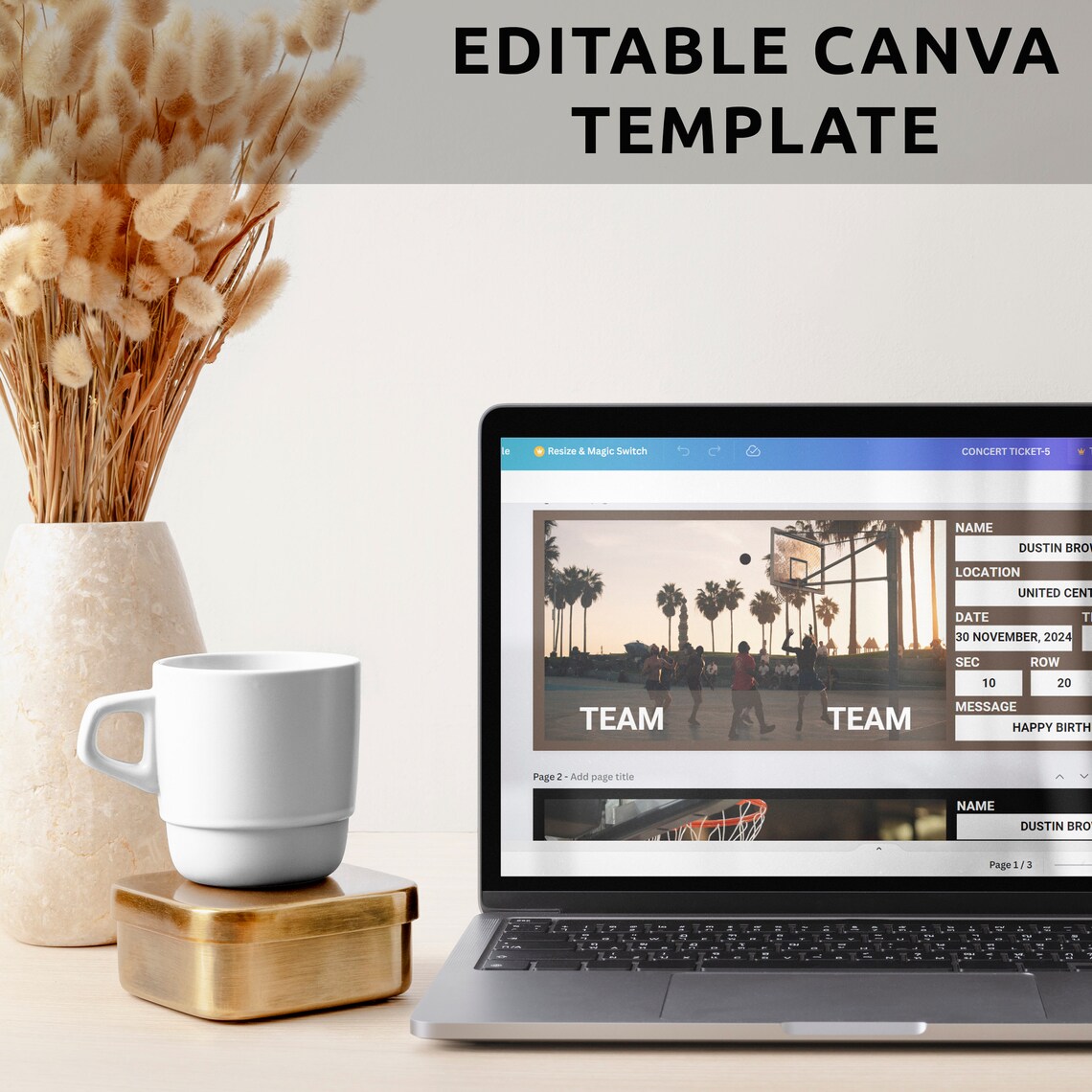 Printable Basketball Tickets Canva Template Editable NBA Basketball
