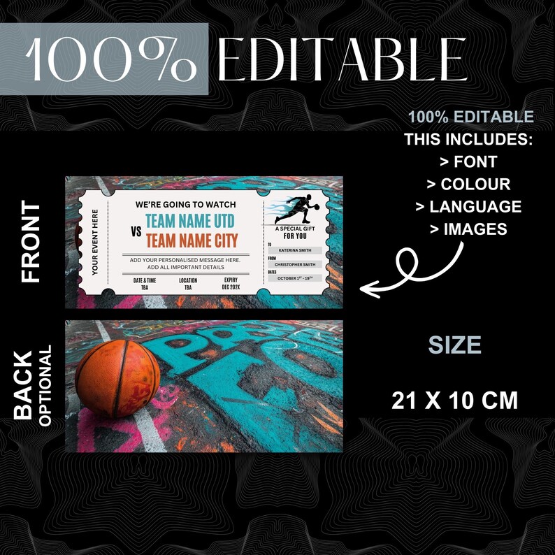 Printable Basketball Ticket Gift Voucher Editable Birthday or