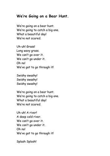 Going On A Bear Hunt Printable Lyrics Printable Budget Sheets