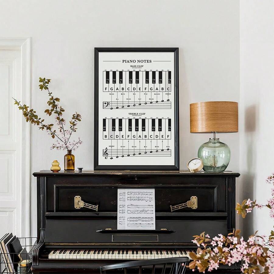 1pc Beginner Piano Notes Poster Piano Keys And Notes Chart Music