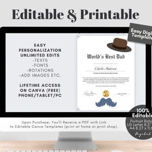 World #39 s Best Dad Certificate Award Printable Editable Best Dad Award