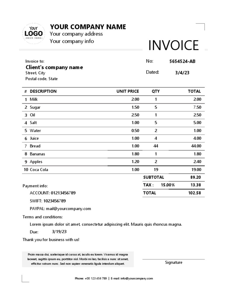 Free Bill Invoice Template Printable Of Free Printable Invoice Template