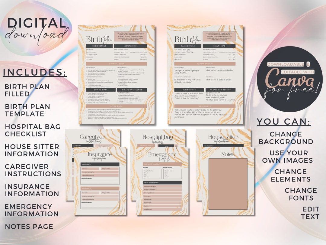 Birthing Plan for First Time Moms Editable Birth Plan Template Canva