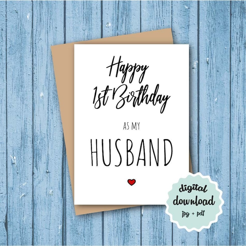 Birthday Card for Husband PRINTABLE Birthday Card Cute Happy 1st