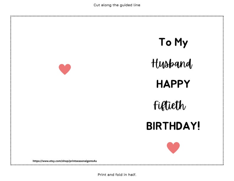 Printable 50th Birthday Card Husband Card Digital Birthday Card