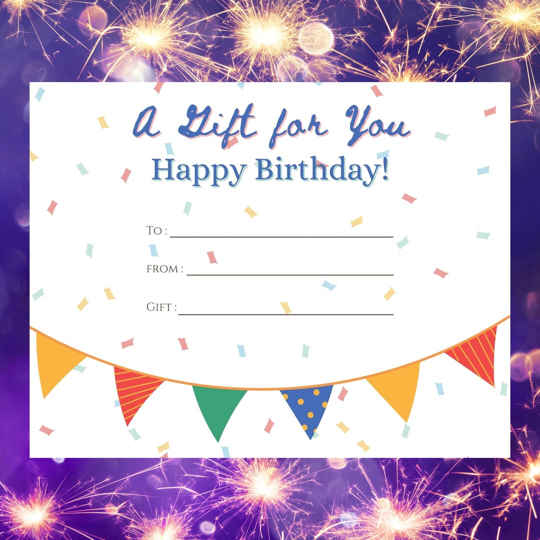 Happy Birthday Gift Certificate Template Printable Unisex Etsy