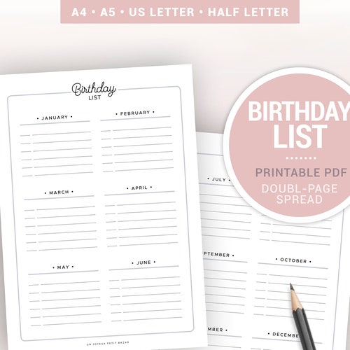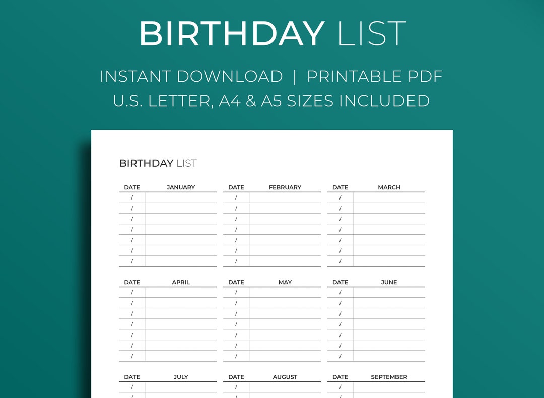 Birthday Tracker Printable Birthday Reminder Birthday List Etsy