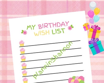 Birthday Wish List / Gift List / Kids Birthday List / Wish List Etsy