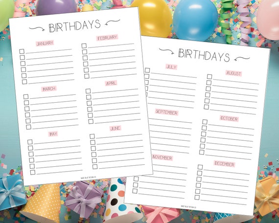 Birthday Tracker Printable Birthday Calendar Printable Etsy