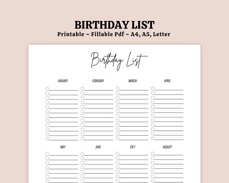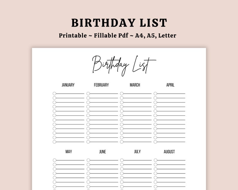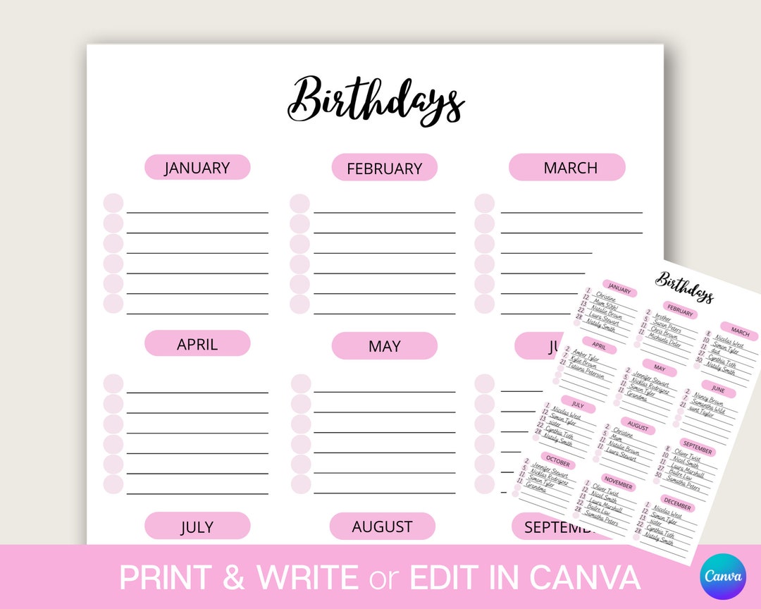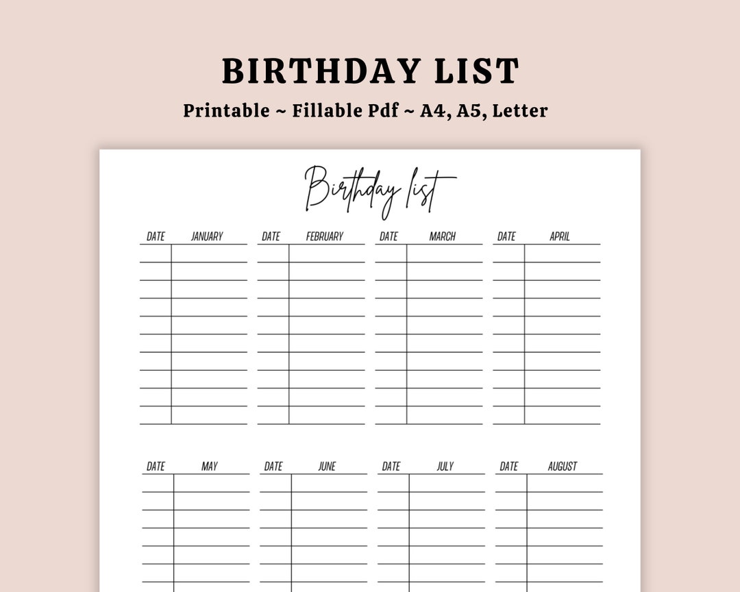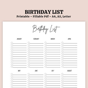 Editable Birthday List Printable Birthday Tracker Birthday Etsy