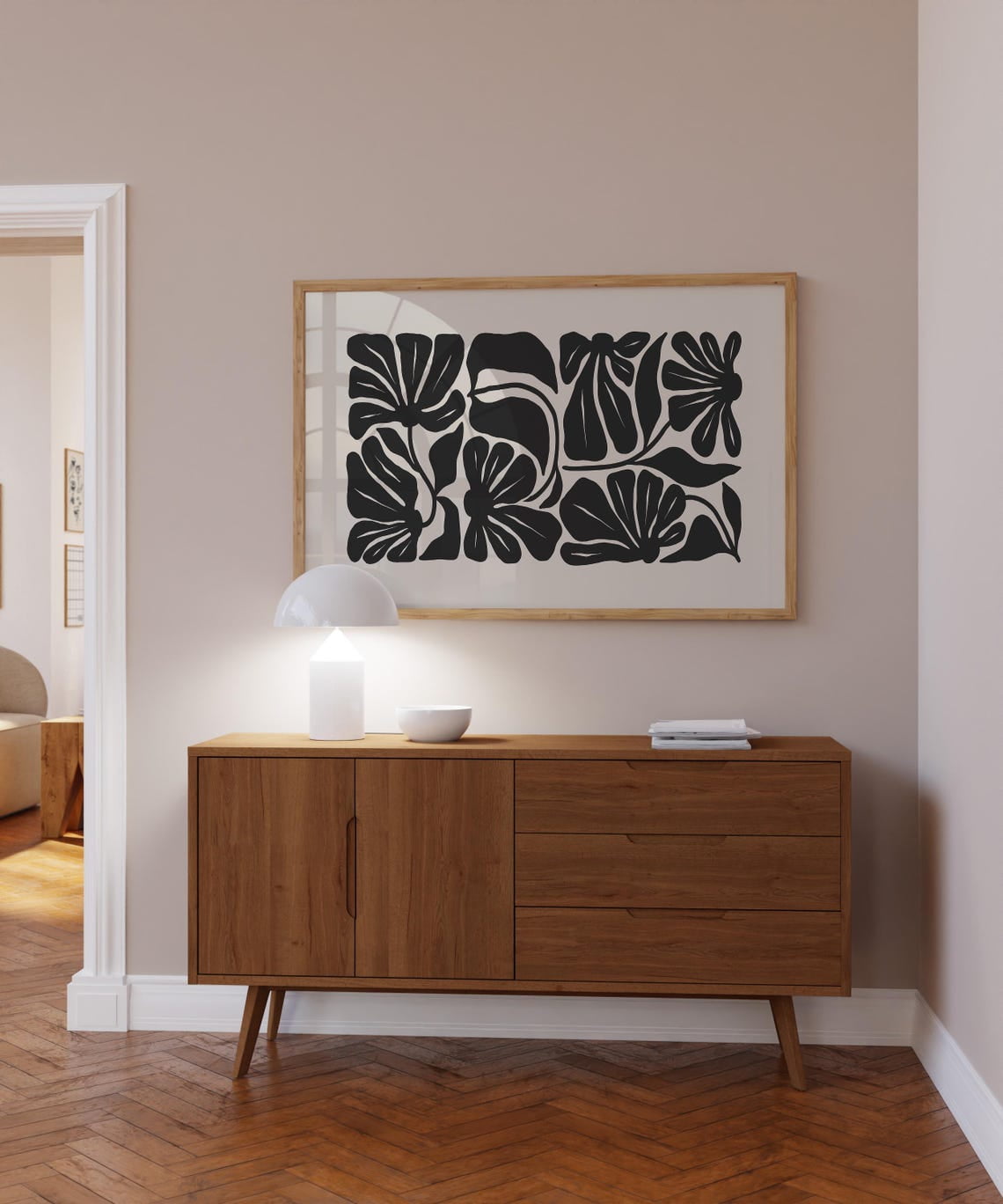 Abstract Flower Printable Art Black White Wall Art Floral Print