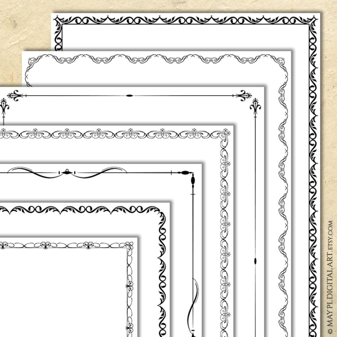 Thin Simple Borders Black Digital Page Frame Clipart DIY Certificate