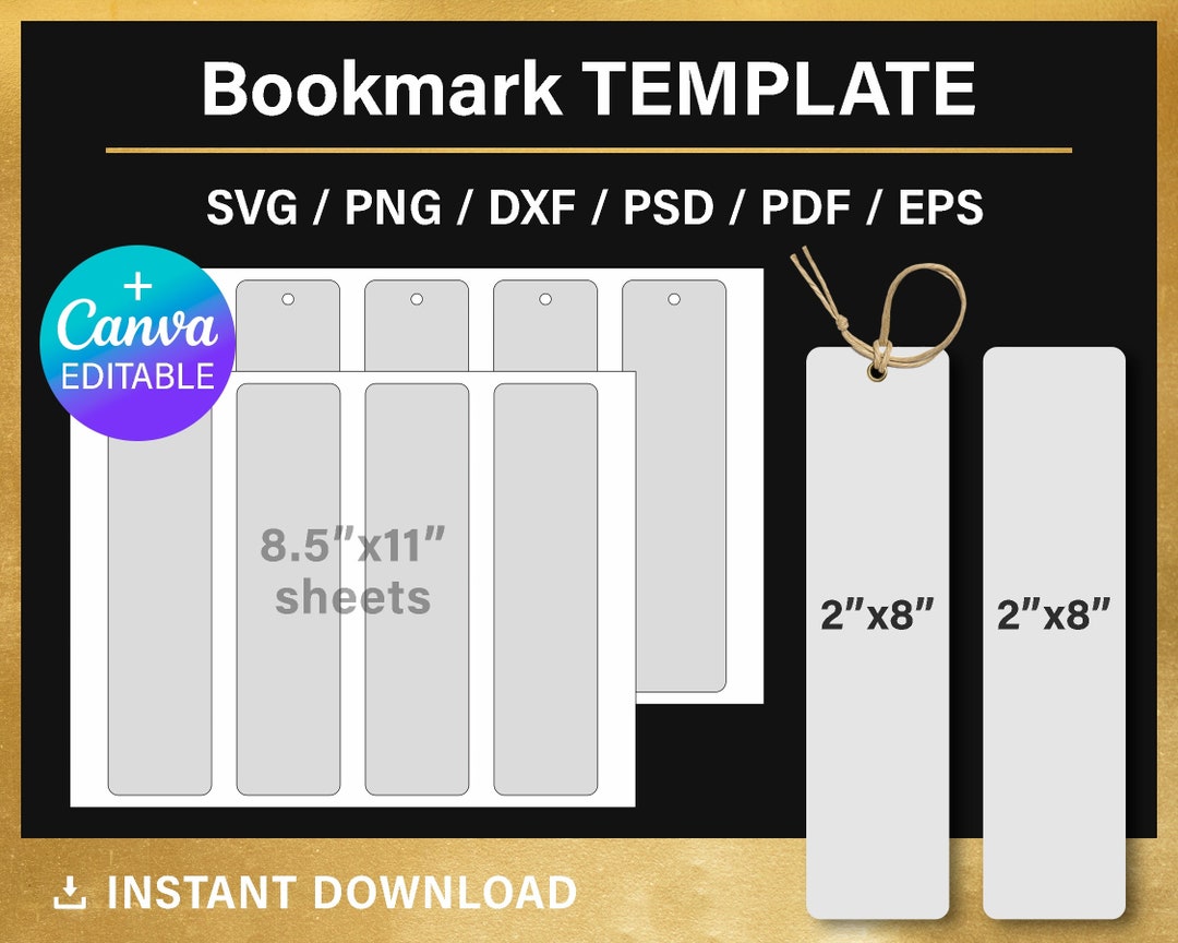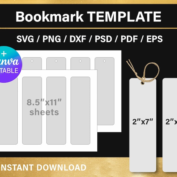 Bookmark Template 8 5x11 Sheet SVG PNG PSD and Docx Etsy