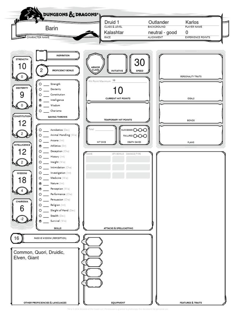 Printable Dnd 5e Character Sheet