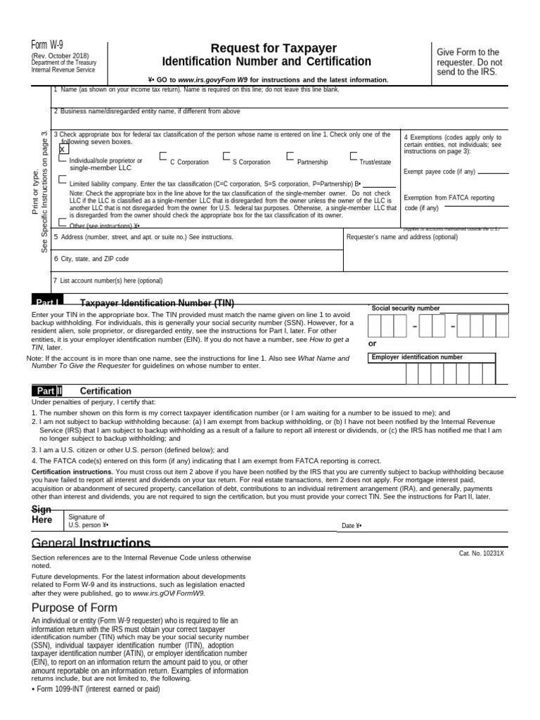 IRS W 9 Printable Form ⮚ W9 Tax Form for 2023: Free Blank PDF to Print