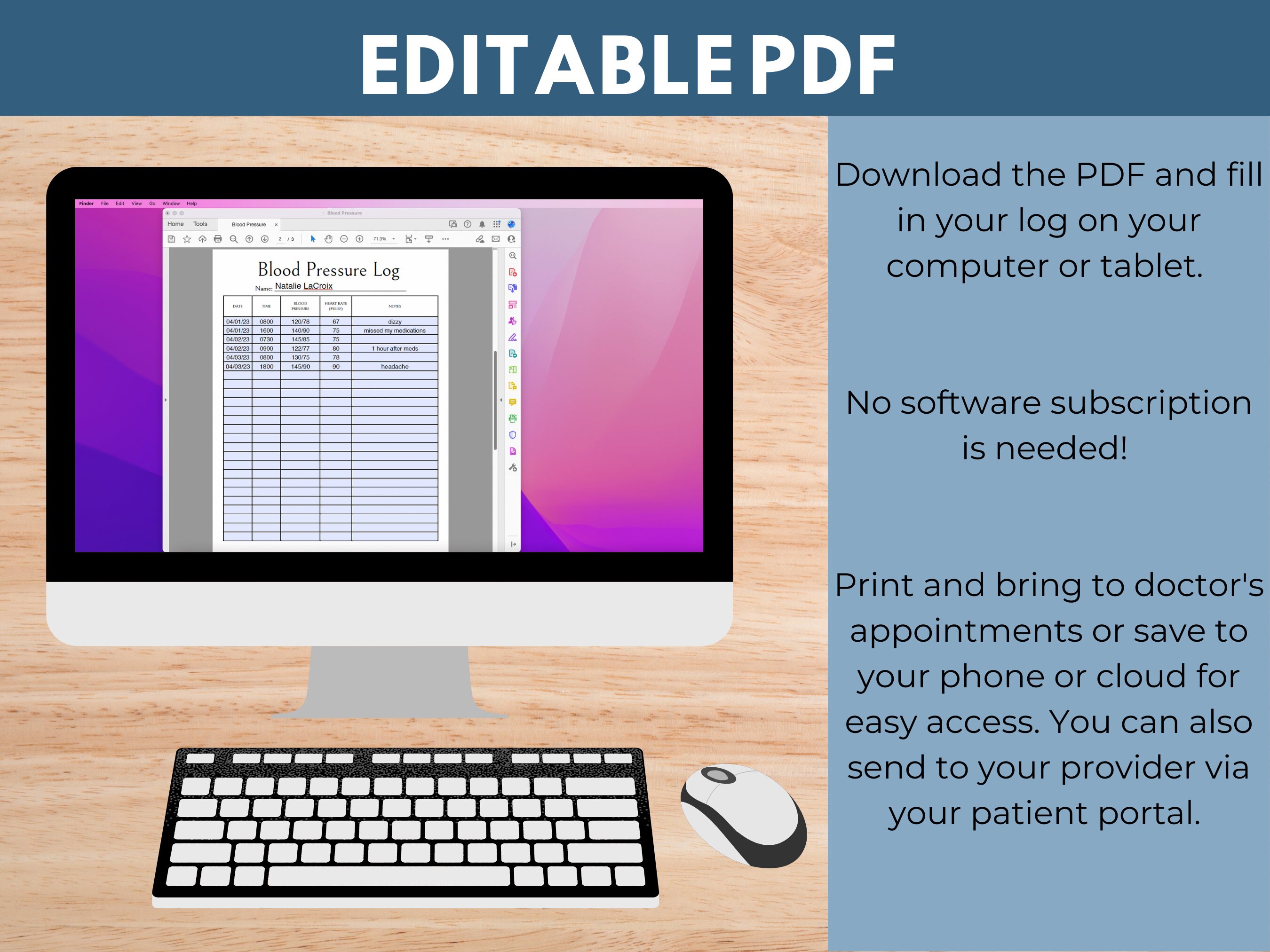 Blood Pressure Log Printable Fillable PDF Blood Pressure Tracker