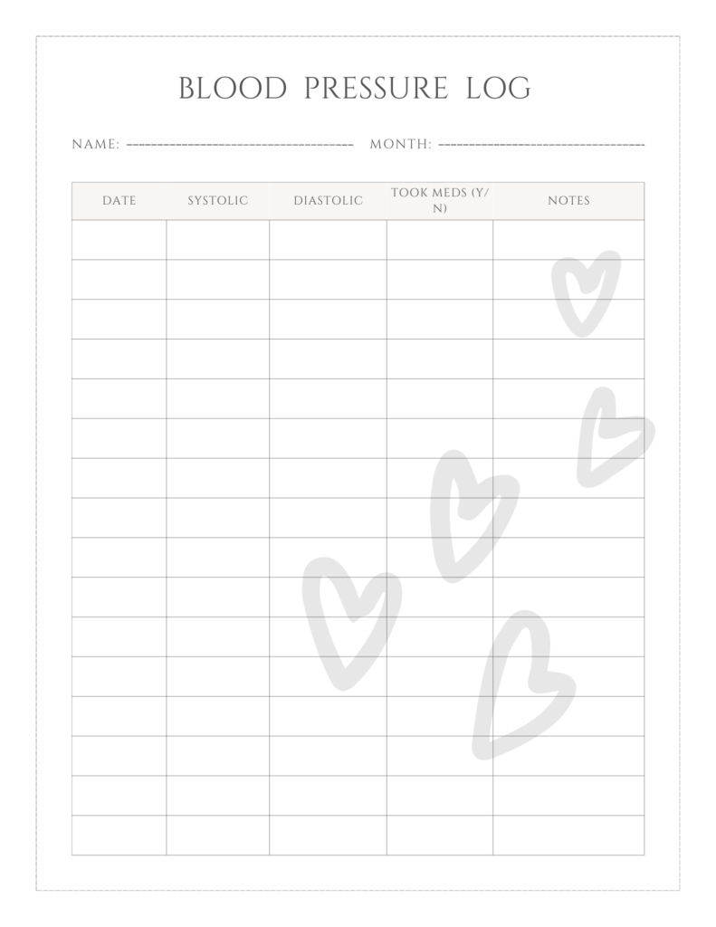 Printable Blood Pressure Log Sheet