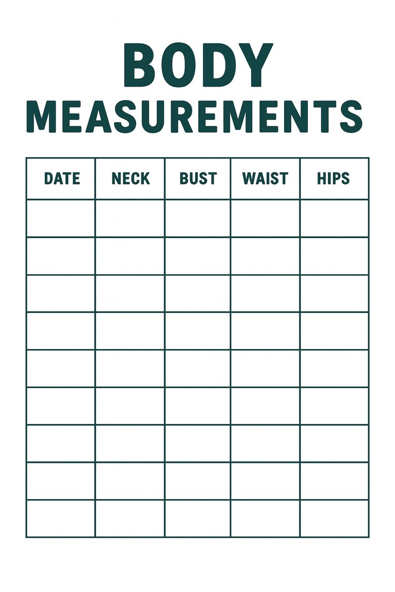 Body Measurements Tracker Printable Fitness Progress Chart