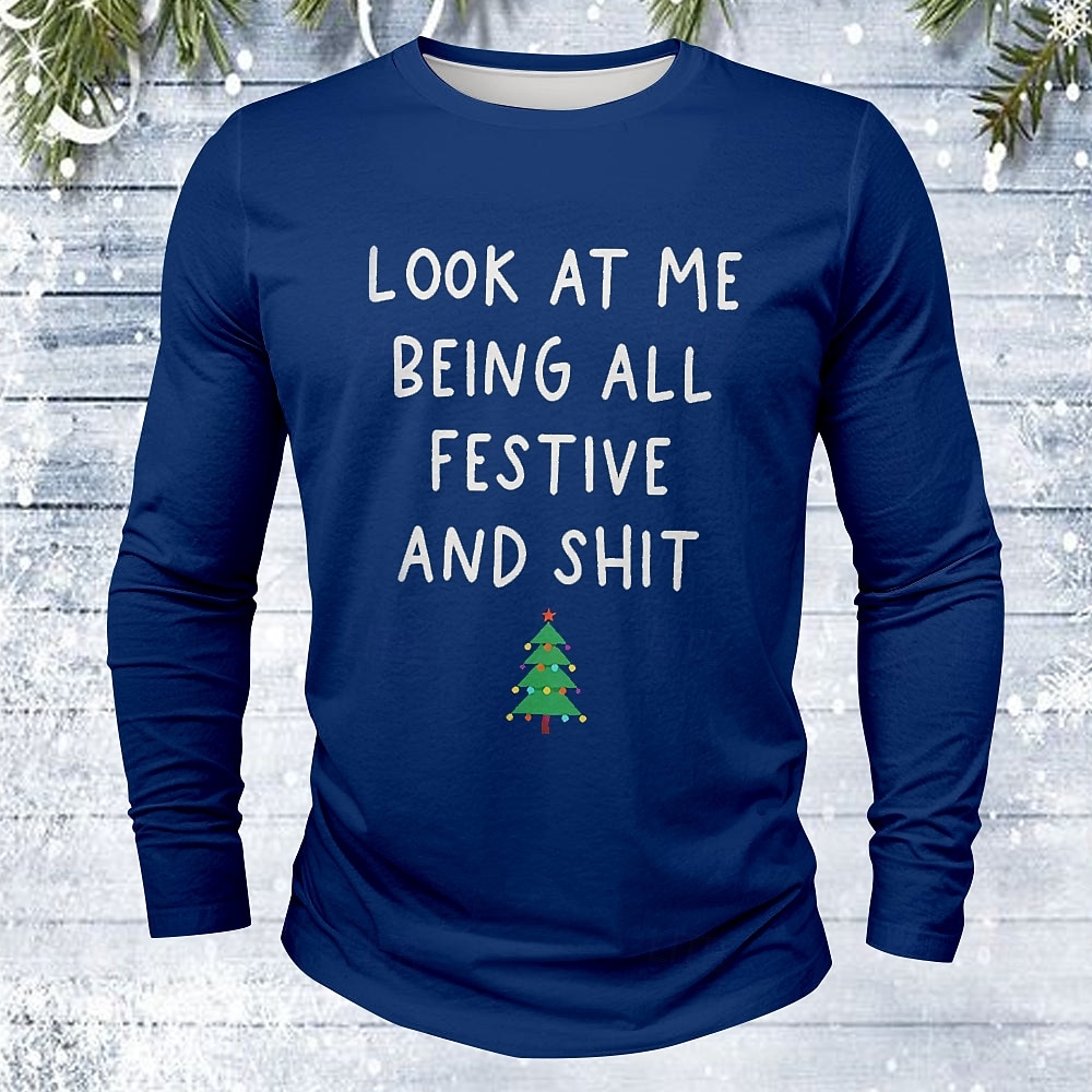 Christmas Men #39 s Tree Funny Slang T Shirt Long Sleeve T shirt 3D Print