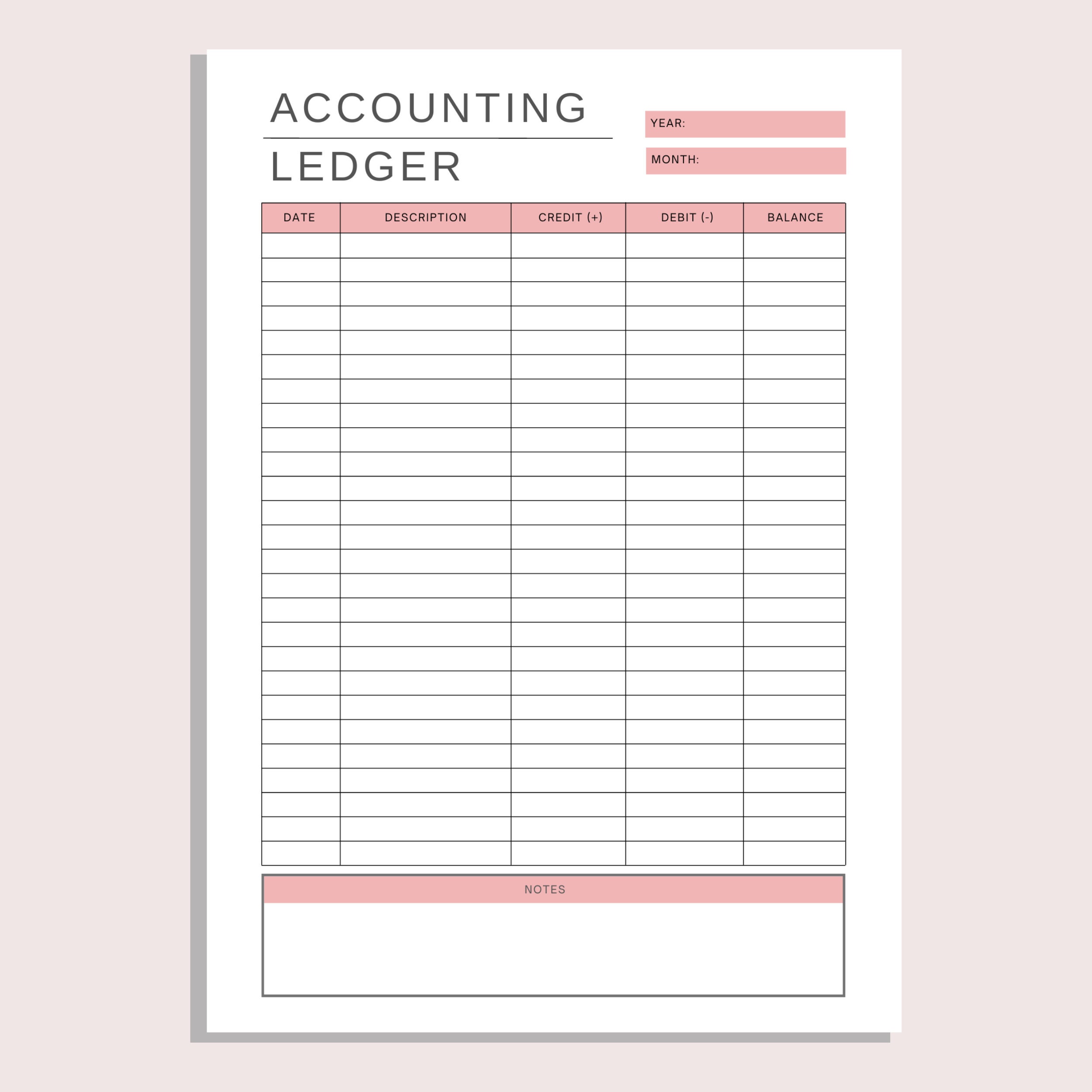 Printable Accounting Ledger Bookkeeping Journal for Small Businesses