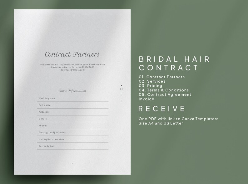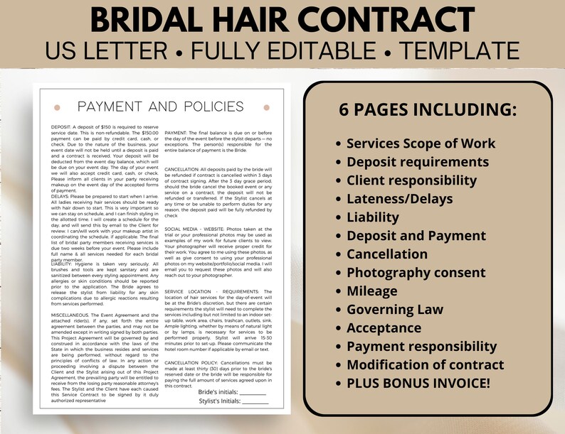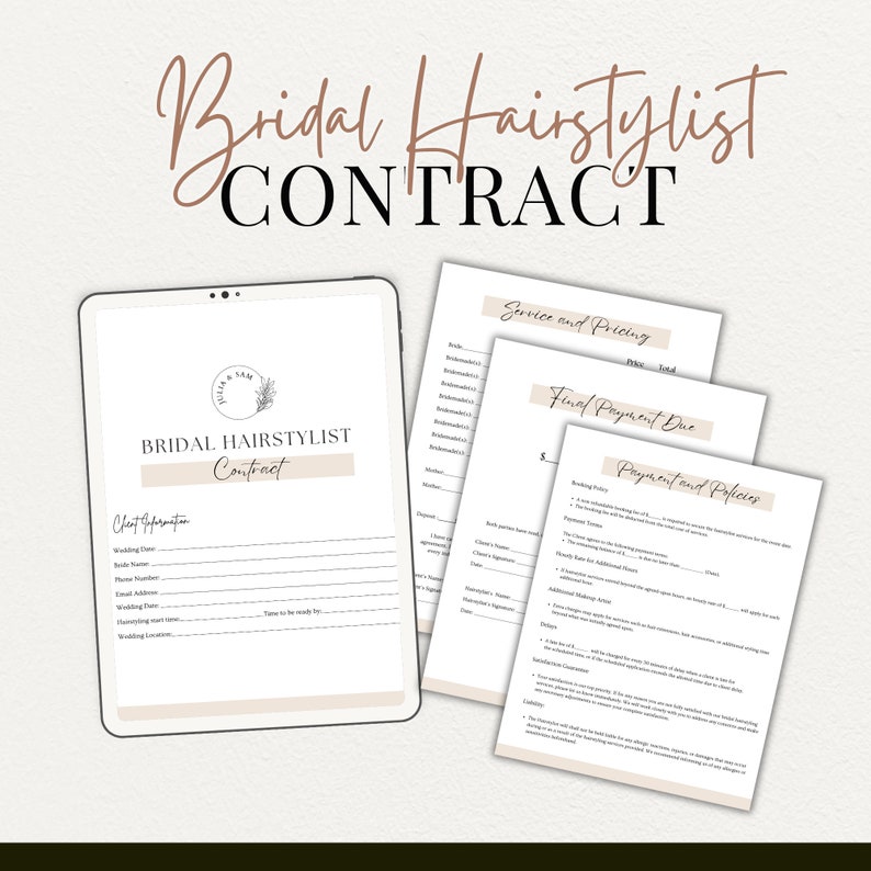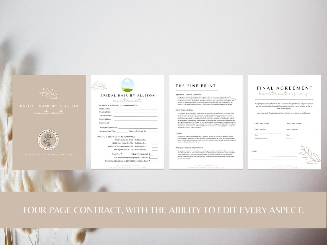 Bridal Hair Contract Wedding Hair Contract Editable Wedding Contract