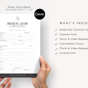 Editable Bridal Hair Contract Template Canva Template Etsy
