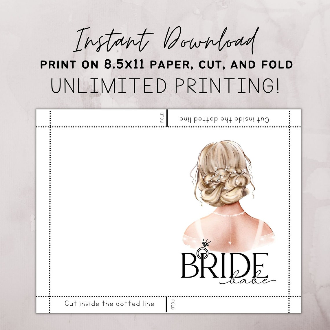 Printable Bridal Shower Card PDF Downloads 2 Sizes // Bride to Be