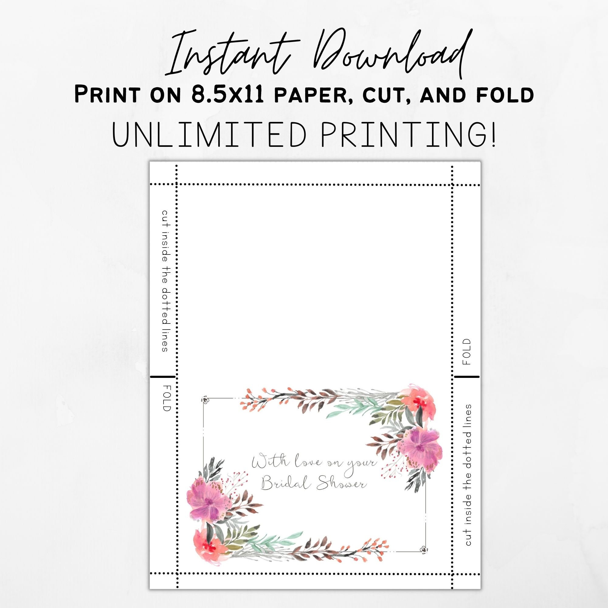 Printable Bridal Shower Greeting Card With Envelope INSTANT Etsy